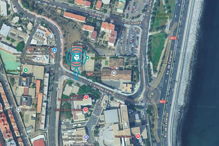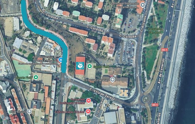 El pabellón del club de bádminton Gran-K Top Spin está ubicado en la calle Villa de Zarauz sin número, en Las Palmas de Gran Canaria.